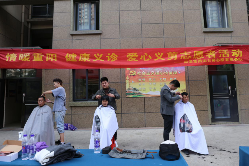 九九重陽(yáng)節(jié),濃濃敬老情。為了弘揚(yáng)中華民族傳統(tǒng)文化,增進(jìn)與業(yè)主間的黏合度,10月25日,在重陽(yáng)節(jié)來(lái)臨之際,尚澤集團(tuán)向日葵志愿者服務(wù)隊(duì)分別在尚澤大都會(huì)、百樂(lè)門(mén)項(xiàng)目開(kāi)展“健康義診、愛(ài)心義剪”活動(dòng),為老業(yè)主免費(fèi)檢查身體、義務(wù)理發(fā)。