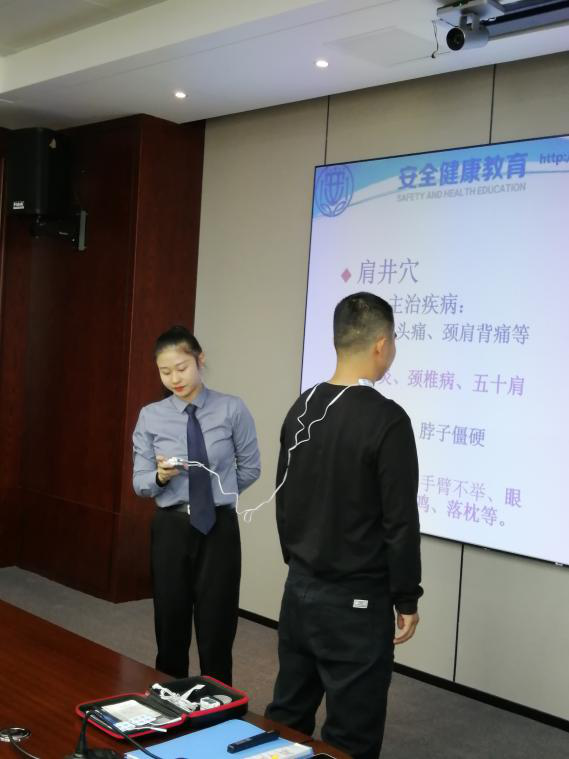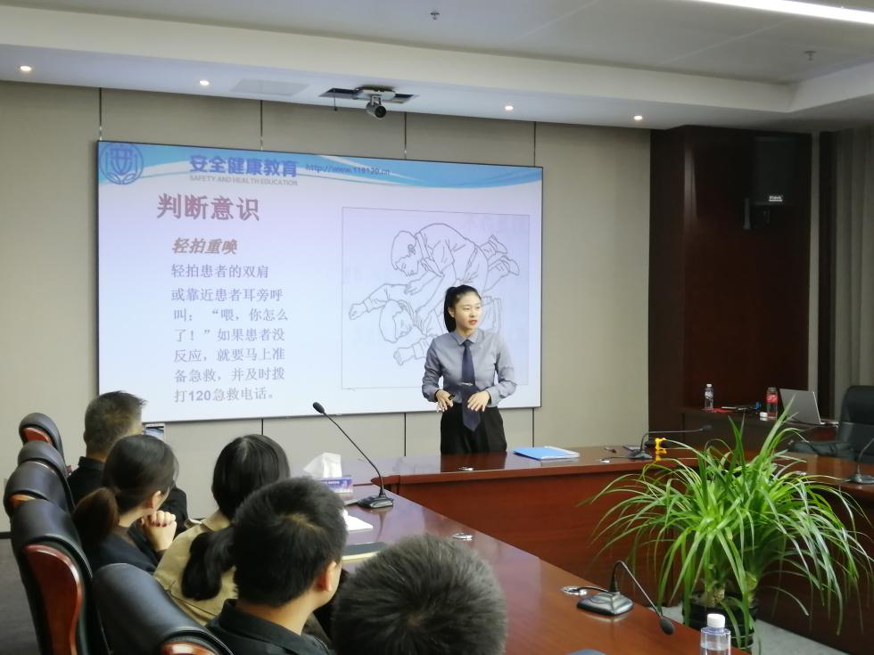 培訓(xùn)中,胡鴻雁老師講解了預(yù)防和應(yīng)對公共衛(wèi)生安全事故的應(yīng)急處理知識,對急救知識進(jìn)行了標(biāo)準(zhǔn)示范,并邀請學(xué)員體驗(yàn)練習(xí),通過生動(dòng)的互動(dòng)教學(xué),讓現(xiàn)場學(xué)員掌握到初級救護(hù)、常見急救護(hù)等基礎(chǔ)知識和使用技能;同時(shí)胡老師還對常見職業(yè)病和慢性病的預(yù)防及改善、如何緩解心理壓力避免焦慮、室內(nèi)外空氣污染的防護(hù)知識等作了詳細(xì)闡述;最后,胡老師呼吁大家,從運(yùn)動(dòng)、飲食到心態(tài)全方位管理好自己的身心健康,讓健康常伴左右,以飽滿的熱情和激昂的狀態(tài)投入到工作生活中來。