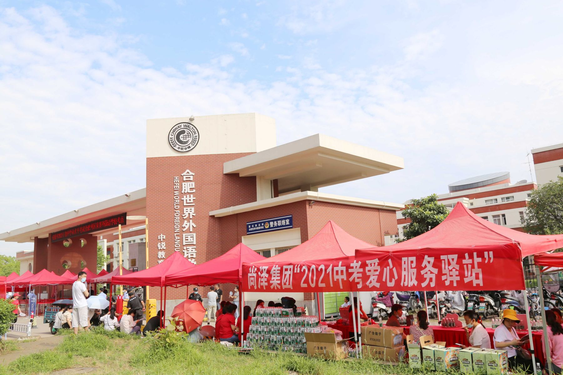 盛夏時節(jié),烈日當(dāng)空,為了給考生們提供優(yōu)質(zhì)高效的愛心服務(wù),全方位為中考保駕護航,營造安全放心、和諧有序的考試環(huán)境,志愿者們在合肥世界外國語學(xué)校設(shè)置志愿服務(wù)點,積極熱情地為考生和家長服務(wù)。